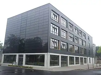 | Neubau mit Mensa im Erdgeschoss | |