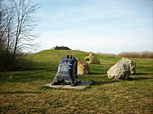 Nach 1990 wurden die nordöstlichen Teile des Tagebaus Profen-Nord rekultiviert.[7] An der Stelle des ehemaligen Ortes erhebt sich ein kleiner Hügel mit einer in Bohlen gefassten Stufenpyramide als Aussichtspunkt. Eine Baggerschaufel und ein Gedenkstein in der Nähe informieren.