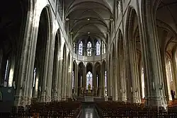 Die Bleiglasfenster zum Altarraum stammen von dem Glasmaler Pierre Gaudin, der auch die große Fensterrose über dem Hauptportal schuf. Ein Fenster gestaltete dessen Tochter Sylvie Gaudin. Die drei Fenster im Zentrum des Chors wurden von dem Maler Arthur Van Hecke entworfen und von der Glasmanufaktur Lhottelier ausgeführt.