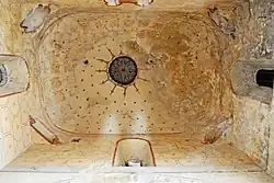 Die Vierungskuppel ist zusammengesetzt aus vier geviertelten Kuppelkalotten, in den vier Ecken des Rechtecks, zwischen denen auf den vier Seiten halbierte Tonnengewölbe mit denselben Radien in zwei unterschiedlich langen Abschnitten eingesetzt sind. Die darunter in den Ecken eingebauten Vouten sollen von der Viertelkreisform der „Kuppelecken“ zu den rechten Winkeln der Vierung überleiten. Sie bestehen hier aus waagerechten dreieckigen Steinplatten, über denen sich rundbogige Nischen mit gerundeten Hintergründen öffnen.