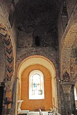 Hinter der vorgenannten Arkade schließt sich mit geringem Rückversatz die im Grundriss halbkreisförmige Chorapsis an, deren Wand nahtlos in die halbkuppelförmige Kalotte der Apsis übergeht. Ein etwa 30 Zentimeter hoher Sockel verläuft rund um die Apsis, innenseitig bündig mit dem unteren Rand der Kalotte.