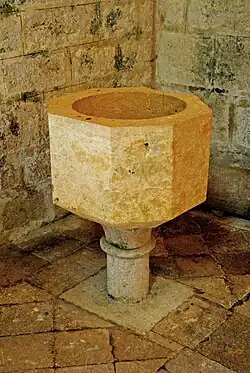 Gleich nebenan, auf der vorderen Wand links neben der Kapelle, findet sich der Rest eines Freskos vom Anfang des 13. Jahrhunderts, dessen Darstellung kaum noch erkennbar ist. Es gibt folgende Deutung: