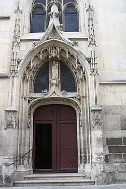 Gegenüber dem Portal befand sich ehemals das Hôtel du Coq, ein nicht mehr vorhandenes Gebäude. In der Mitte des Tympanons ist in einer Nische die Skulptur einer Madonna mit Kind aufgestellt.