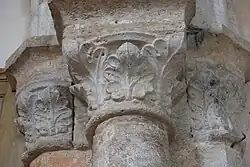 In der Kirche sind Kapitelle aus dem frühen 12. Jahrhundert erhalten, auf denen große Blätter dargestellt sind.