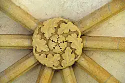 Die wesentlich größere Höhe des Chorraumes ist erst wahrzunehmen, wenn man aus dem Schiff in die Nähe des Triumphbogens kommt. Die das System des Kreuzrippengewölbes tragenden Säulen sind in Pfeilerbündel aus Rundstäben aufgelöst und teilen sich am Beginn der Wölbung in die verschiedenen Richtungen der Rippenprofile auf. Das Motiv lässt an die Auffächerung von Ästen und Zweigen in Bäumen erinnern.