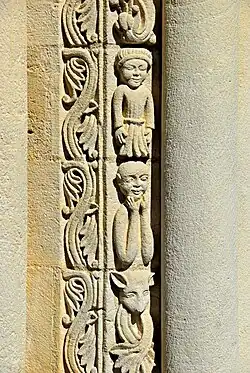 St-Hérie, Archivoltenportal, Detail Säulenbegleiter