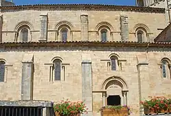 Die drei Chorapsiden stehen in Verlängerung der drei Schiffe des Chorjochs vor dessen Giebelwand. Die mittlere ist deutlich umfangreicher, vor allem höher, als die beiden äußeren. Sie wird von einem flach geneigten Dach in Form eines halben Kegels überdacht. Ihre Traufe besteht aus einem abgeschrägten profilierten Kraggesims mit einem schmalen Scheibenfries, der von einer rundbogigen Zwergblendarkatur unterstützt wird. Die gerundeten freien Wandflächen sind durch im Querschnitt rechteckige Strebepfeiler in etwa drei gleiche Abschnitte unterteilt. Diese reichen mit bis kurz unter das Traufgesims und verringern knapp über der halben Höhe ihren Querschnitt. Die Köpfe der Strebepfeiler sind mit steilen Abschrägungen abgedeckt, die allseits auskragen. Darunter befinden sich große rechteckige Kapitelle, die mit feingliedrigen Pflanzenstrukturen dekoriert sind. Zwischen den Pfeilern sind eher im unteren Wandbereich schlanke rundbogige Fenster ausgespart. Die äußeren Apsiden kommen ohne Strebepfeiler aus. Sie werden von flach geneigten Dächern in Form von einem Viertelkegel überdeckt, der in Richtung Mittelapsis in ein Stück Pultdach übergeht. Die Dacheindeckung entspricht denen der übrigen Dächer. Das Traufgesims mit profilierter schräger Sichtkante liegt auf schlicht skulptierten nach innen ausgerundeten Kragsteinen. Lediglich im Scheitel der Apsiden ist je ein rundbogiges Fenster ausgespart, das kleiner ist als in der Mittelapsis.