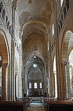 Das Langhaus steht auf einem rechteckigen Grundriss und ist in Längsrichtung in drei Schiffe und in Querrichtung in vier Joche unterteilt. Es zeigt den typischen basilikalen dreizonigen Cluny-Aufriss.