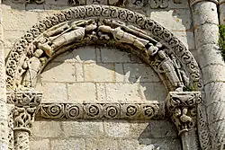 Corme-Royal, Gesims über Hauptportal und Pfeilervorlage