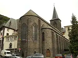 Der Architekt Aymon Mallay (1805–1883) entwarf die 1855 vollendete neugotische Kirche als dreischiffiges Langhaus ohne Querung, mit Tympanon und Empore. 1886 wurde eine Krypta hinzugefügt. Die Kirche ist in dem für die Gegend typischen schwarzen Vulkanstein gebaut.