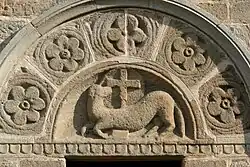 Das Tympanon des Südportals ist mit einer recht ‚primitiven‘ Darstellung des von fünf Blütenrosetten umgebenen Osterlamms geschmückt. Der Kopf des Lammes ist nach hinten gewendet; sein Blick richtet sich auf ein Kreuz. Die ansonsten vollkommen schmucklose Pforte diente ehedem den Mönchen zum Betreten der Kirche vom Klausurbereich aus.