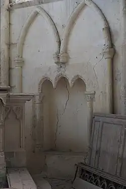 Der polygonale Chor stammt aus dem frühen 13. Jahrhundert. Er wird von fünf großen, zweibahnigen Fenstern und neun kleineren Rundfenstern erhellt. Im Chor ist eine von zwei eingestellten Säulen gerahmte und einem Dreipassbogen überspannte Piscina in die Wand eingebaut.