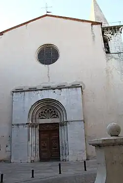 Aus zwei Ursprungskirchen des 11. und 12. Jahrhunderts wurde im 15. Jahrhundert eine einzige Kirche geformt, 1519 mit einem Glockenturm versehen, 1602 vergrößert, mit Kuppel versehen und 1768 geweiht. Die heutige Kirche ist stilistisch eine Mischung aus romanischen und gotischen Elementen. Sie steht in Süd-Nord-Richtung mit Fassade und Eingang im Süden. Bemerkenswert ist das Eingangsportal mit darüberliegender Fensterrose (von 1512).