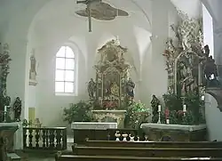 Bei der Restaurierung 1991 wurden spätgotische Außenquader gefunden. Im Inneren wurden gotische Wandmalereien, datiert auf 1515 bis 1520, freigelegt: Apostelkreuze, die Pestpatrone Rochus, Sebastian, Maria Magdalena und der heilige Georg, ein kniender Mönch vor dem gekreuzigten Christus mit lateinischer Inschrift sowie die vier Evangelisten.