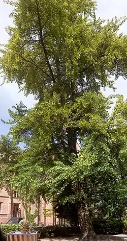 Im Zentrum des Historischen Innenhofes steht ein gesunder, gut gewachsener Ginkgo. Weitere Laub- und Nadelbäume sowie Büsche vervollständigen den parkähnlichen Charakter. Die Wiesenflächen mit Blumenbeeten darin sind gut gepflegt. Nördlich des Hauses Vinzenz von Paul ist ein schmaler Blumen- und Kräutergarten vorhanden, in dem Trainingsgeräte für Arm- und Beinmuskulatur aufgestellt sind. Er wird auch Garten der Borromäerinnen genannt.[3] Zahlreiche Bänke laden zum Verweilen. Das Zentrum des U-förmigen Hofbereichs des Haupthauses wird von einer rund 15 m hohen Platane beherrscht.