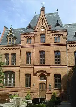 - Das Elisabethhaus wurde 1886–1889 als Hospital für Altersschwache nach Plänen von Max Hasak errichtet.