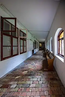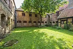 Verbunden werden die Gebäude der Anlage vom vierflügligen Kreuzgang, dem sogenannten Schwahl,[14] mit seinem Kreuzrippengewölbe aus dem 14. Jahrhundert, der den Klosterhof umgibt. Rund um den Kreuzgang sind die Wohnbereiche angeordnet. Auch die Nonnenempore und der Chor sind vom Schwahl aus zu erreichen, so konnten die Nonnen ihr Chorgestühl bzw. die Konventualinnen ihre Gebetsstübchen erreichen, ohne das allgemein zugängliche Langhaus betreten zu müssen. Der Ostflügel wurde 1899/1900 größtenteils neu errichtet.