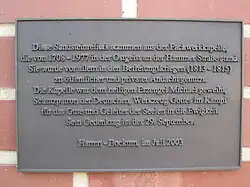 Bronzetafel zur Erläuterung der Kalksandsteintafeln am Pfarrheim der St. Stephanuskirche.