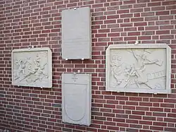 Kalksandsteintafeln am Pfarrheim der St.-Stephanus-Kirche.