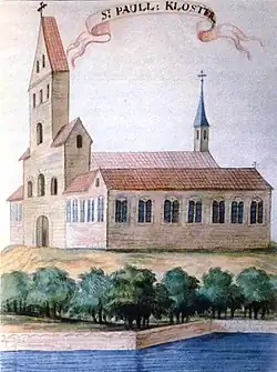 Das Kloster wurde zweimal gegründet: Die Chronik Adams von Bremen berichtet um 1050, Erzbischof Adalbert I. habe aus den Gütern des von Anschar gestifteten Hospitals drei „Propsteien“ in Bremen eingerichtet, darunter als dritte die ‚sancto Paulo‘ geweihte.[1] Nach wenigen Jahrzehnten war diese anscheinend verfallen, denn ein Mann namens Thrubertus stiftete an gleicher Stelle ein neues Kloster, das 1139 vom Erzbischof Adalbert II. in seinen Schutz genommen wurde.[2] Es wurde zum wirtschaftlichen Zentrum der Vorstadt vor dem Ostertor, die bis ins 16. Jahrhundert als ‚Sankt-Pauli-Vorstadt‘ bezeichnet wurde.