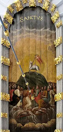 Zu den herausragenden Kunstwerken der Kirche gehört die Polychromie auf dem Gewölbe, gemalt auf dem Plafond in einem Ausmaß von 27 mal 3 Metern. Dargestellt sind biblische Szenen mit Darstellungen der Ägyptischen Plagen, über das Jüngste Gericht und über die Anbetung des Jesuskindes. Den Innenraum beleuchten drei Kronleuchter, die aus einer Metalllegierung in den Jahren 1661, 1702 und 1703 angefertigt wurden. Besonders prunkvoll ist der zweistöckige und sechzehnarmige Leuchter aus dem Jahr 1661, den David Ertmann gestiftet hat.