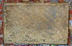 Noch bis in die 1930er Jahre war unterhalb der Fenster der südlichen Außenwand dieser und ein weiterer aus dem 16. Jahrhundert stammender Ziegeltongrabsteine eingearbeitet. Sie waren aus gebranntem Ziegelton hergestellt. Steine dieser Art sind nur sehr wenige erhalten. Um sie vor Witterungseinflüssen zu schützen, wurden sie restauriert und dann in den Innenraum unterhalb des Kirchturms umgesetzt, sind dort jedoch heute nicht mehr vorhanden. Die größere der beiden Platten war 26 cm breit, 25,5 cm hoch und 5 cm stark. Die Inschrift war in deutscher Fraktur gefasst und lautete: Anno 1592 den / 9 May ist Aeva / Heinrich Koval / Elige Hausfrauwe / in Gott entschlaff: und erinnerte so an den Tod von Eva Koval der ehelichen Hausfrau Heinrich Kovals am 9. Mai 1592. Der andere Stein war 20 cm breit und hoch und 6 cm stark. Er trug in fehlerhaftem Latein die Inschrift: ANNO 1575, DIE 12 / JVLIJ MANE HORA 8 IN / CHRO JOACHIMUS FILIO- / LVS JOANIS STARCKIJ HIC / PASTORIS, OBDORMIJT. / 20. SEPTIMAN:PLEVRISI ET / PHTHISI MISERE DECVBES / NATUS. 2. ANN: ET QVADRAT. Die Inschrift bedeutet in etwa Im Jahre 1575 ist am Dienstag, den 12. Juli, frühmorgens 8 Uhr, Joachim, das Söhnchen des hiesigen Pastors Johann Starck, in Christo entschlafen, nachdem es 20 Wochen an Brustfellentzündung und Schwindsucht darniederlag. Sein Alter war 2 1/4 Jahr. Es erscheint möglich, dass die beiden zu den Steinen gehörenden Gräber sich unterhalb des ursprünglichen Standortes der Grabplatten an der Südseite der Kirche befanden.[7] Die Steine wurden wohl bei der Zerstörung der Kirche im Jahr 1945 vernichtet. Im Jahr 2021 konnte jedoch ein erhaltenes Bruchstück des Steins von 1592 aufgefunden werden.