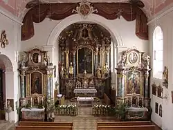 Der mächtige Hochaltar beherrscht den Innenraum. Er wurde 1737 vom Eichstätter Altarbauer Johann Jakob Bochler errichtet. Die vier überlebensgroßen Heiligenfiguren (Florian, Willibald, Walburga, Wendelin) wurden 1754/1755 aufgestellt. Auf dem Hochaltarbild ist der heilige Ägidius mit Hirschkuh in seiner Einsiedelei in der französischen Camargue zu sehen. Der heutige Tabernakel wurde 1964 angebracht.