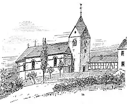 Die Kirche geht auf das 12.–13. Jahrhundert zurück und wurde als Filiale von Honnef errichtet. Bei Ausschachtungsarbeiten für eine Fußbodenheizung der Kirche entdeckte man Altarfundamente und die Mauer einer vermutlich rechteckigen Vorgängerkirche. Sehenswürdigkeiten innerhalb der Kirche sind der barocke Hauptaltar von 1779 (restauriert 1957) und der mit Andesit vom Stenzelberg erbaute Taufstein aus dem 13. Jahrhundert (restauriert 1961). Die Pfarrkirche ist der Rest der 1824 im Kern abgerissenen und bis 1827 wiederaufgebauten Kirche, wobei das klassizistische Langhaus entstand und der romanische Turm sein rechteckiges Portal erhielt. 1889 wurde das neue Rhombendach angebracht, wobei der Kirchturm um fünf Meter erhöht wurde. Bis 1893 erfolgten weitere Arbeiten, darunter der Anbau mehrerer Dreiecksgiebel. 1923 kamen die beiden Seitenschiffe dazu.