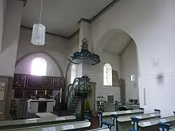 Der Innenraum ist flach gedeckt, im Querhaus sind Gewölbeansätze erkennbar. An den Langhauswänden befinden sich noch die Auflager der ehemaligen Nonnenempore.