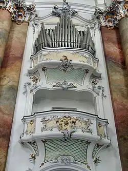 Die Dreifaltigkeits- und die Heilig-Geist-Orgel wurden zur Einweihung der Kirche durch den aus Ottobeuren stammenden und in Dijon (Frankreich) sehr erfolgreich gewordenen Orgelbauer Karl Joseph Riepp erbaut und 1766 fertiggestellt. Sie sind links und rechts als Chororgeln auf den Emporen über dem Chorgestühl in beeindruckender, teils hängender Konstruktion eingebaut.