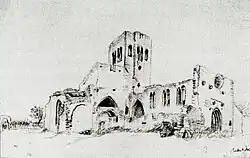 Anfang des 20. Jahrhunderts waren von der Kirche noch die südliche Wand des Langhauses und der südliche Teil des Querschiffs erhalten.[22] Auch bis 1956 standen noch bauliche Reste.[23] Im September 1956 gestattete Oberbürgermeister Heinrich Völker US-Streitkräften, die für den Bau eines Sportplatzes einige Kubikmeter Schutt zum Auffüllen benötigten, die Ruine dafür abzureißen.[24]