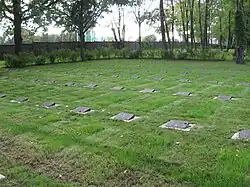 Die als Alleequartierfriedhof angelegte Begräbnisstätte trägt einen parkähnlichen Charakter mit zahlreichen Laub- und Nadelbäumen sowie weiten Wiesenflächen. Alte Baumbestände aus Linden markieren das Hauptwegenetz.[4] Auf dem Friedhof befinden sich 899 Einzelgräber der Opfer von Krieg und Gewaltherrschaft.[3]