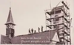 Da die Anzahl der Katholiken nach dem Zweiten Weltkrieg anwuchs, begannen 1954 die Vorarbeiten für die Verlängerung der Kirche, welche 1955 abgeschlossen werden konnte. 1956 wurde neben der verlängerten Kirche ein Kirchturm errichtet, in den die Glocken aus dem bisherigen Dachreiter umgesiedelt wurden. Am 1. und 2. Juni 1957 wurde die fertiggestellte Kirche durch Bischof Christian Caminada eingeweiht.[8] Als im Jahr 1963 im Kanton Zürich die katholische Kirche öffentlich-rechtlich anerkannt wurde, erfolgte die Gründung der katholischen Kirchgemeinde Bauma, zu der die vier politischen Gemeinden Bauma, Bäretswil, Fischenthal und Sternenberg gehören.