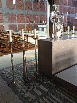 Bereits 1948 begann der Aufbau einer Notkirche,[11] die dann 1950 genutzt werden konnte. Dieses Gebäude ist heute der Pfarrsaal.
