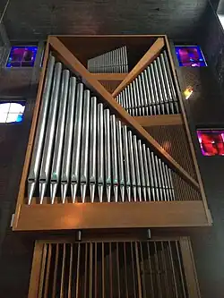 Die Disposition der Orgel erfolgte durch Ernst Kaller von der Folkwangschule. Die Orgel besitzt am frei stehenden Spieltisch drei Manuale und ein Pedal für insgesamt 30 Register. Die Spieltraktur ist mechanisch ausgeführt, die Registertraktur elektrisch.[15]