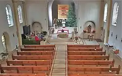- Der aus Colmar im Elsass stammende Bildhauer Albert Erny schuf im Jahr 1961 den Hauptaltar mit Kreuz.
