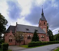 Die Grundsteinlegung für die neugotische Saalkirche aus Backsteinen war am 5. Juli 1896, die Einweihung am 12. September 1897. Der Entwurf stammt von einem Baubeamten des Kreises Soest. Die Kirche besteht aus einem Langhaus mit vier Jochen, das mit einem Satteldach bedeckt ist, einem eingezogenen Chor im Osten mit Fünfachtelschluss, deren Wände von Strebepfeilern gestützt werden, und einem querrechteckigen Kirchturm im Westen, aus dessen Walmdach sich ein quadratischer Dachreiter erhebt.