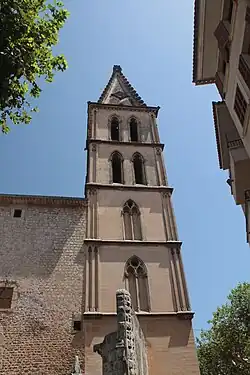 Bereits Ende des 14. Jahrhunderts bestand ein dreigeschossiger Glockenturm. Der heutige Kirchturm entstand nach einem Entwurf von Joan Sureda und befindet sich an der Südwestecke der Kirche. Er verfügt über fünf Etagen und ist bekrönt mit einer Pyramidenkuppel im Stil der Neogotik. Der Bau erfolgte zwischen 1895 und 1900.