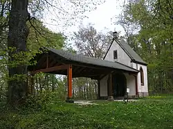 Eine stilisierte Abbildung der 1809 abgebrochenen Wallfahrtskirche dient dem 2003 eingerichteten Wanderweg Glaubenswege als Logo.