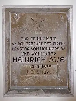 Von 1861, dem Jahr seiner Priesterweihe an, bis zu seinem Tod 1871 mit nur 42 Jahren war Heinrich Aue (* 1829), nach dem heute die an der Kirche vorbeiführende Straße benannt ist, als erster ortsansässiger Priester in Hönnersum tätig. Im Jahre 1864, Hönnersum hatte damals 245 Einwohner, begann der Bau der St.-Bernward-Kirche. Ermöglicht wurde er durch großzügige Spenden der Einwohner von Hönnersum. Heinrich Aue stiftete sein ganzes Vermögen für den Kirchenbau. In diesem Zusammenhang wurde die St.-Oswald-Kapelle abgerissen; der Oswaldplatz erinnert noch heute in Hönnersum an die ehemalige Kapelle. Am 29. Dezember 1865 wurde aus der Kuratiegemeinde Hönnersum eine selbstständige Pfarrei. Am 13. Mai 1866 folgte die Konsekration der St.-Bernward-Kirche durch Bischof Eduard Jakob Wedekin, von diesem Jahr an wurden in Hönnersum auch Kirchenbücher geführt. Zweitpatron der Kirche wurde Oswald, der Schutzpatron der Vorgängerkapelle. Erster Pastor der Kirche wurde Heinrich Aue, der 1866 vom Kaplan zum Pfarrer befördert wurde. 1871 wurde die erste Orgel eingebaut. Um 1873 folgte unter Joseph Graen, dem zweiten Pfarrer von Hönnersum, der Bau des Pfarrhauses in der heutigen Heinrich-Aue-Straße 25.