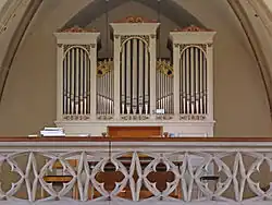 Die geostete Kirche, ein dreischiffiger neugotischer Bau mit einem Westturm, befindet sich in knapp 92 Meter Höhe über dem Meeresspiegel. Sie wurde vom Kölner Baumeister Vincenz Statz entworfen und bietet rund 128 Sitzplätze. Über dem Eingangsportal zeigt ein Relief Maria mit dem Jesuskind, flankiert von zwei Engeln. Darüber ist ein Oculus eingelassen. Auf den Eingangstüren ist als Symbol für die Eucharistie jeweils ein Kelch mit einer Hostie im Strahlenkranz dargestellt. Das Mittelschiff wird von einem Kreuzrippengewölbe überspannt, die beiden Seitenschiffe von einem Tonnengewölbe, getragen von vier schwarzen Marmorsäulen auf achteckigen Sockeln. Der Innenraum wird von modern gestalteten spitzbogenförmigen Buntglasfenstern erhellt. Die drei Chorfenster von 1966 wurden von Paul König (* 1932) aus Hildesheim[3] entworfen und zeigen Symbole der Dreifaltigkeit.