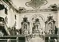 Das Hauptgemälde des Gütenbacher Hochaltars war, dem dortigen Patrozinium entsprechend, eine Enthauptung der heiligen Katharina von Alexandrien, ein frühes Werk Simon Gösers. Es ist in Gütenbach verblieben und hängt dort in der Werktagskapelle der neuen, 1965 geweihten Pfarrkirche.[10] Für Schallstadt wurde 1993 ein 1765 von Johann Pfunner geschaffenes Gemälde des heiligen Blasius in der St. Vincentius-Kirche in March-Neuershausen[11] kopiert. Ein Engel hält über den Heiligen im Bischofsornat die Krone des Martyriums und zwei gekreuzte Kerzen. Das Schallstädter Oberbild zeigt in einer Kopie aus dem Jahr 1850 Simon Gösers Bergung der Leiche des heiligen Johannes Nepomuk aus der Moldau.