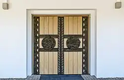 Zwei Bronzereliefs an den Türen der Kirche zeigen den heiligen Blasius.
