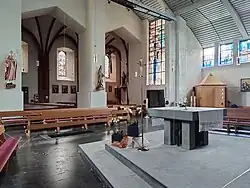 Durch die steigenden Einwohnerzahlen war die Kirche für die zahlreichen Besucher der Gottesdienste nicht mehr ausreichend. Deshalb wurde das Langhaus 1971 durch einen Anbau nach Süden erweitert. Bei diesem Umbau musste die Empore abgebrochen werden. Für sie wurde über dem alten Eingang eine neue Empore aus Beton errichtet. Diese wurde bei den Renovierungsarbeiten 1997 wieder abgebrochen. Die Sakristei wurde in das Erdgeschoss des Turmes verlegt. Die Orgel mit 17 Registern, 2 Manualen und Pedal wurde 1973 von Bernhard Schmidt gebaut.[1]