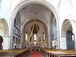 Einen Übergang zum Zentrum der Kirche bilden der Taufstein und der Osterleuchter. Das spirituelle Zentrum der Kirche ist der Hochaltar mit dem Tabanakel. Über dem Hochaltar befindet sich ein Wandgemälde nach romanischem Vorbild mit Christus als Herrscher der Welt.