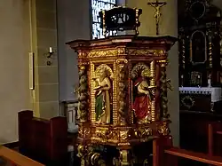 - Die Kanzel ist eine Arbeit aus der Zeit um 1680.[8]