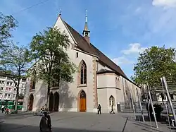 An Stelle der heutigen Kirche befand sich ursprünglich ein Kloster der Sackbrüder. Dieser Orden wurde 1274 durch Beschluss des Zweiten Konzils von Lyon aufgehoben. 1279 übergab Bischof Heinrich von Isny das verwaiste Kloster dem Orden der Clarissen, welcher seit 1266 in Basel nachgewiesen ist. Im Jahr 1320 umfasste die circa 60 Meter lange Kirche einen saalförmigen Langchor, den Nonnenchor, von sechs Säulenjochen mit Polygonschluss. Daran anschliessend befand sich ein etwa gleich langes, dreischiffiges Langhaus, auch Leutkirche genannt. Das Gebäude war durchgehend flachgedeckt. Von diesem Vorgängerbau stammen die vier westlichen Joche, welche man in der heutigen Kirche findet.