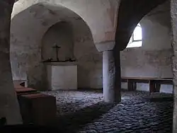 Zwischen 1008 und 1010 wurde der Ostchor für die Nonnen nach Westen um zwei Arkaden mit eigenem Zugang erweitert und gleichzeitig um etwa zwei Meter angehoben, um darunter eine Krypta auszubauen. Die Krypta hat ein Tonnengewölbe mit einer monolithischen Rundstütze; die Gewölbetonnen verschneiden sich rechtwinklig, ehe sie zur Rundung der Apsis hin verschliffen werden; es handelt sich um „kunstvolle Verschränkungen der Gewölbe“ (Tschira S. 13).
