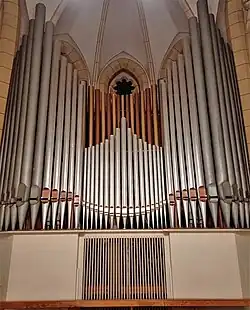 Die Orgel der Kirche wurde 1961 durch Michael Weise (Plattling) erbaut. Das Kegel- und Taschenladen-Instrument mit Freipfeifenprospekt[15] verfügt über 34 Register, verteilt auf drei Manuale und Pedal und ist im Chorraum hinter dem Altar aufgestellt. Die Spiel- und Registertraktur ist elektropneumatisch.