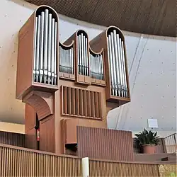 Die Orgel der Kirche wurde 1984 von der Orgelbaufirma Firma Hugo Mayer Orgelbau (Heusweiler) erbaut. Das Instrument hat 20 Register auf zwei Manualwerken und Pedal. Der eingebaute Spielschrank ist dreimanualig angelegt. Das 1. Manual ist ein Koppelmanual. Beim Bau wurde das Pfeifenwerk der ehemaligen Orgel der Aula des Homburger Johanneums wiederverwendet. Aufgestellt ist das Instrument auf einer Empore hinter dem Altar. Die Windladen sind Schleifladen mit mechanischer Spiel- und elektrischer Registertraktur.[7]
